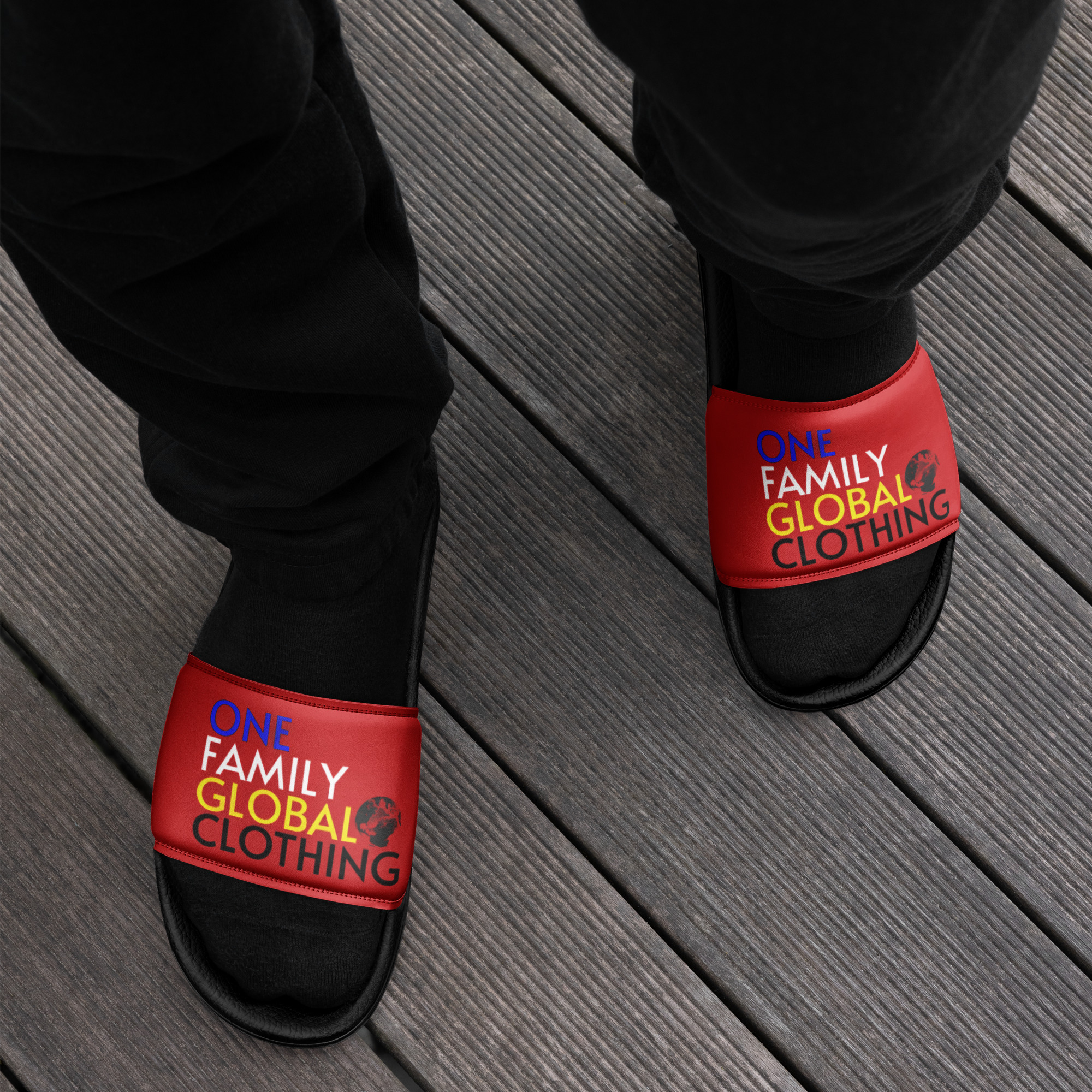 Step into the pride of the Twin‑Island Nation with the Antigua & Barbuda Edition Men’s Slides by One Family Global Clothing. Featuring the striking red, blue, black, yellow, and white of the national flag — symbolising the rising sun of a new era, the strength of the people, the surrounding Caribbean Sea, and the warmth of Antiguan and Barbudan spirit — these slides honour a heritage defined by resilience, beauty, and island unity.
