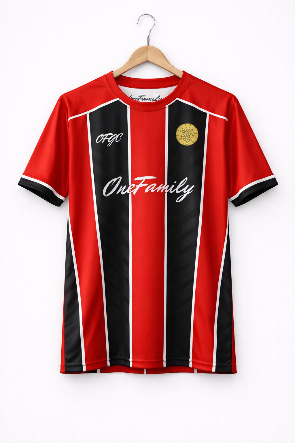 Designed to fuse sport and culture, this jersey features striking red and black vertical striping, symbolising strength, resilience, and national identity. Finished with the signature One Family script across the chest “Trinbago” on the back and OFGC detailing, it’s built for those who represent Trinbago culture worldwide — from carnival season to everyday streetwear.