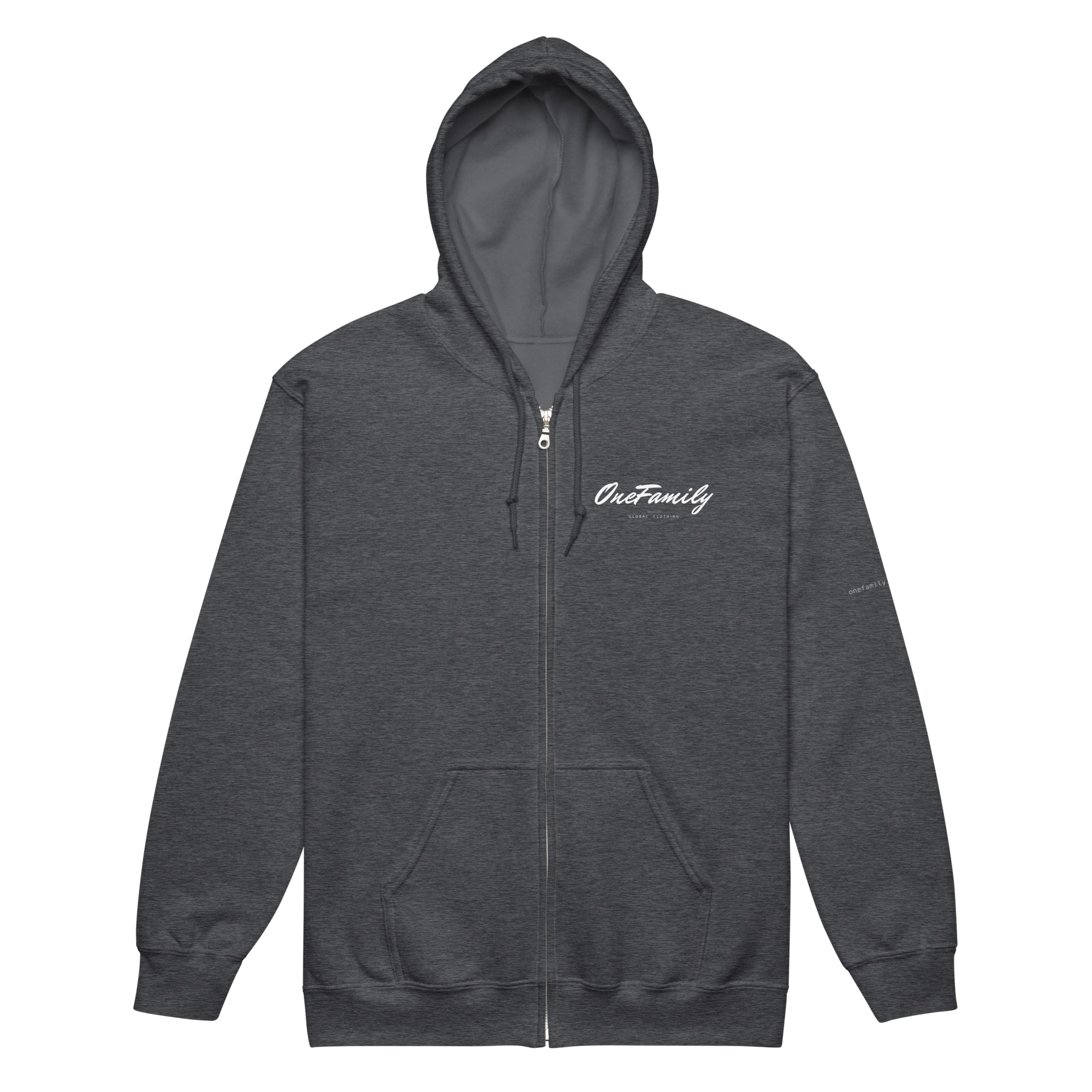 Unite comfort, culture, and everyday streetwear with the One Family Unity Zip-Up Hoodie — a staple designed to represent togetherness wherever you go. Finished with the signature One Family script on the chest, this zip-up blends minimalist branding with premium fleece comfort, making it perfect for layering across all seasons.